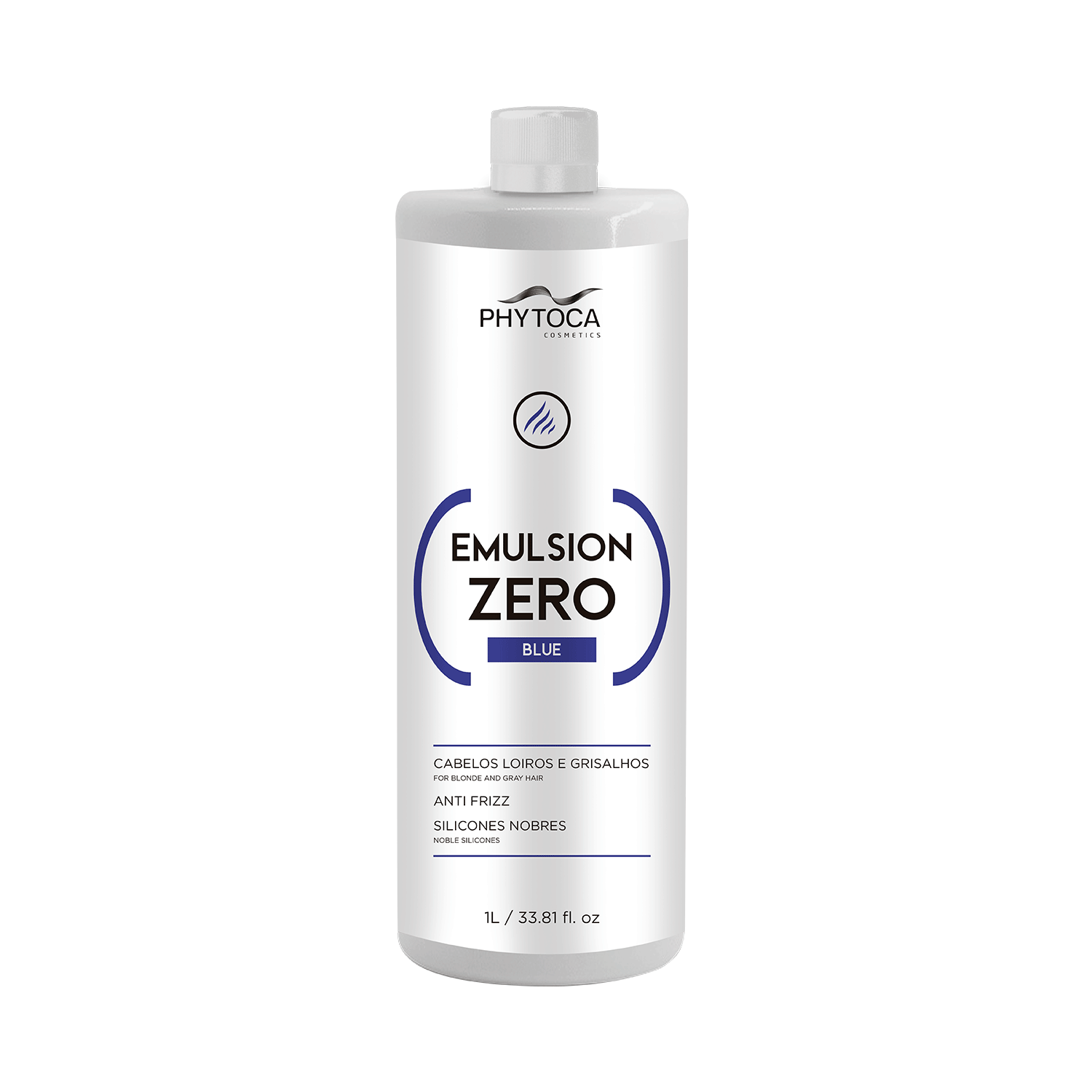 Emulsión Zero Blue cuenta en su formulación con activos tecnológicos que nutren la fibra, reducen el encrespamiento y aportan equilibrio y suavidad a los cabellos rubios, decolorados o con canas. El complejo de Aminoácidos en su formulación protege el cabello de los radicales libres, evitando que la fibra se desvanezca excesivamente, mientras que las Siliconas Nobles crean una película protectora y aportan más brillo y sellado a la fibra capilar.